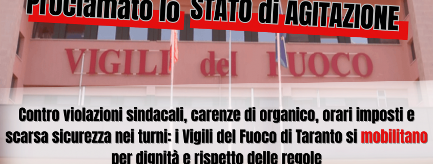 Sulla questione è intervenuto anche la UIL di Taranto con il coordinatore Gennaro Oliva, che ha espresso piena solidarietà alla categoria dei Vigili del Fuoco e ha posto l’accento sulla violazione sistematica delle regole sindacali. “Quello che sta accadendo nel comando provinciale dei Vigili del Fuoco rappresenta un caso emblematico di come le relazioni sindacali vengano calpestate quando manca la volontà di confronto da parte delle istituzioni — afferma Oliva —. Non stiamo parlando di richieste irragionevoli, ma del rispetto delle procedure previste dai contratti collettivi e dalla normativa vigente”.