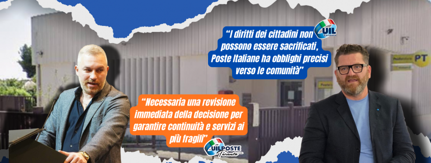 Sulla vicenda è intervenuto anche Gennaro Oliva, coordinatore territoriale UIL Taranto, che ha ribadito l’importanza del ruolo pubblico di Poste Italiane nel garantire i diritti dei cittadini: “Non si possono sacrificare le esigenze delle persone sull’altare della burocrazia tecnica o della gestione aziendale. Poste Italiane ha obblighi precisi verso le comunità che serve – afferma Oliva – e l’interruzione prolungata del servizio a Pulsano è una scelta che mina il diritto di ogni cittadino ad accedere con continuità a un servizio essenziale. UIL Taranto sostiene con forza la richiesta della UIL Poste affinché si trovi una soluzione immediata e ragionevole, che salvaguardi i diritti dei cittadini e la dignità del lavoro”.
