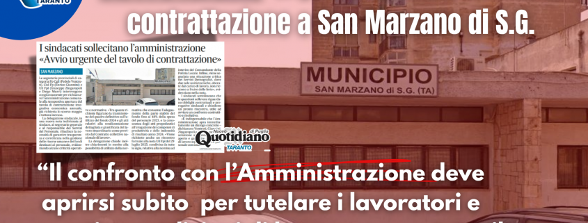 Taranto, 14 ottobre 2025 – Le segreterie provinciali di categoria FP CGIL (Fedele Ventruti), CISL FP (Enrico Giannini) e UIL FPL (Giuseppe Zingaropoli, Diego Murri) intervengono congiuntamente per richiamare l’Amministrazione comunale alla tempestiva apertura del tavolo di contrattazione integrativa economica annuale, già richiesta lo scorso maggio e tuttora inevasa.