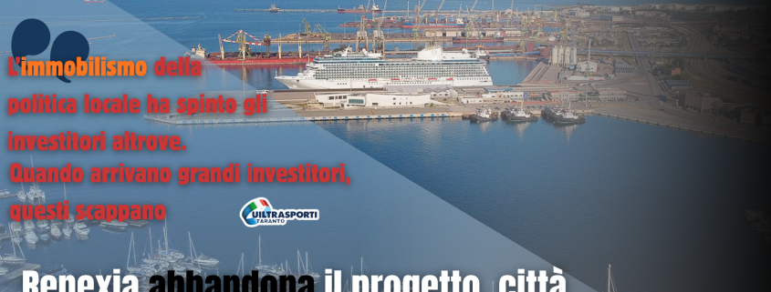 “Non possiamo nascondere la nostra preoccupazione per il futuro del porto di Taranto e per i lavoratori. La scelta di Renexia di dirottare il progetto in Abruzzo è una ulteriore sconfitta per la città, che si vede sfumare un’opportunità straordinaria di sviluppo economico e industriale”, afferma Sasso. Il progetto, infatti, prevedeva un investimento da 500 milioni di euro e la creazione di circa 1.500 posti di lavoro diretti e indiretti, con la produzione di turbine eoliche flottanti per il parco eolico offshore di Med Wind, nell’area di Trapani.