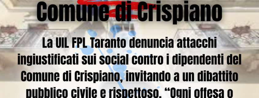 “Siamo i primi a difendere la libertà di espressione – sottolineano Murri e Zingaropoli – ma ricordiamo che essa incontra il limite del rispetto della dignità altrui, come previsto dall’articolo 2 della Costituzione e dall’articolo 595 del Codice Penale in materia di diffamazione, anche telematica. Il dibattito pubblico, per essere utile, deve restare nei confini della correttezza e del confronto civile”. La UIL FPL evidenzia che i dipendenti comunali di Crispiano, in particolare quelli impegnati negli uffici istituzionali e nella gestione delle risorse tributarie, “svolgono ogni giorno i propri compiti nel rispetto delle norme e delle procedure, senza condizionamenti politici e nell’interesse esclusivo dei cittadini”.