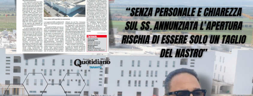 “Il San Cataldo non può aprire svuotando altri ospedali – dichiara Giovanni Maldarizzi, segretario generale della UIL FPL Taranto –. Servono assunzioni straordinarie e immediate. Senza un piano occupazionale serio e autorizzazioni ministeriali dedicate, l’apertura rischia di trasformarsi in un’operazione di facciata, pagata dai lavoratori e dai cittadini”.