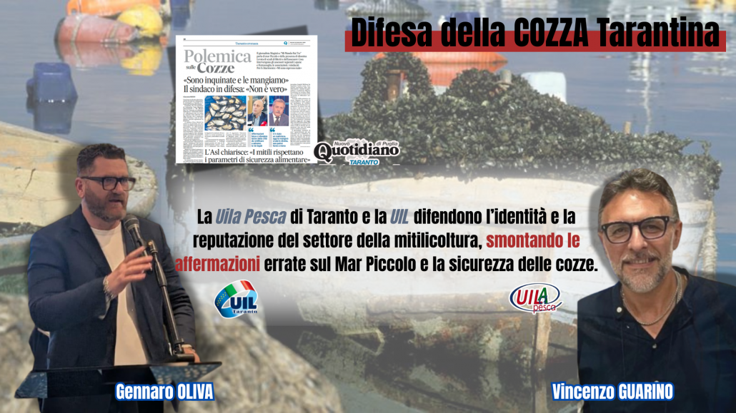 Taranto, 16 settembre 2025 – La Uila Pesca di Taranto, attraverso il suo segretario generale Vincenzo Guarino, interviene con fermezza per smentire le dichiarazioni rilasciate dal giornalista Enzo Magistà durante una diretta televisiva su Rai3 del 14 settembre a “Mi Manda Rai Tre” nella quale ha affermato che le cozze di Taranto sarebbero allevate nel Mar Piccolo, inquinato dalla diossina. La Uila Pesca ritiene queste affermazioni prive di qualsiasi fondamento scientifico e un attacco ingiustificato al lavoro di centinaia di operatori, mitilicoltori e ristoratori che, ogni giorno, portano avanti la loro attività rispettando rigorosamente le normative sanitarie e ambientali.