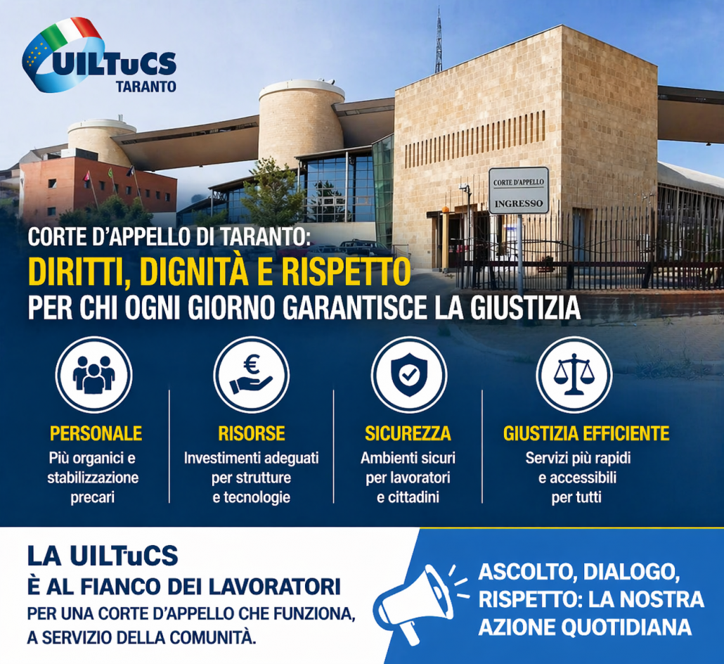 UILTUCS | Corte d’Appello di Taranto: Diritti, Dignità e Rispetto per chi ogni giorno garantisce la Giustizia