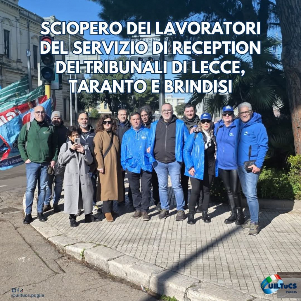 Taranto, 2 gennaio 2026 – La UILTuCS Puglia proclama lo stato di agitazione del personale impiegato nel servizio di portierato e reception delle sedi della Corte di Appello di Brindisi, Lecce e Taranto, a seguito delle decisioni assunte dalla Corte di Appello di Lecce, committente del servizio.